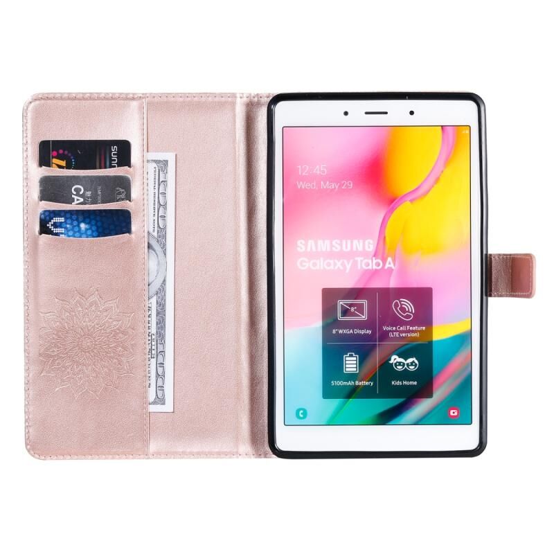 Θήκη δέρματος οριζόντιας αναδίπλωσης με εκτύπωση λουλουδιών ηλίου για Samsung Galaxy Tab A 8.0 (2019) T295/T290, με βάση στήριξης & θήκες καρτών & πορτοφόλι (Πράσινο)