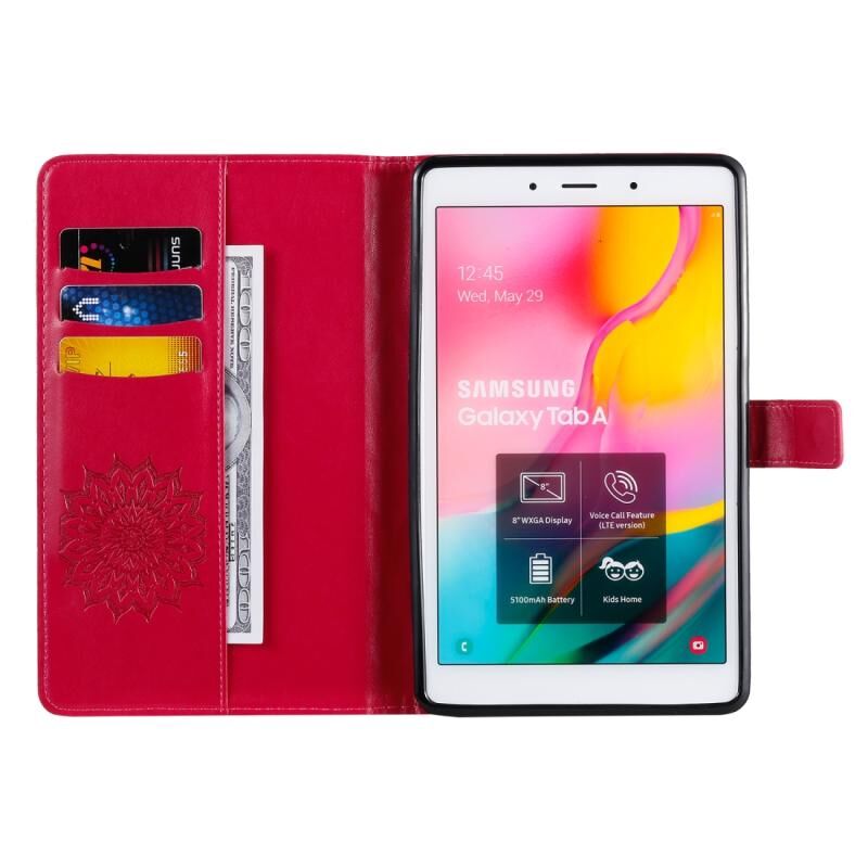 Θήκη δέρματος οριζόντιας αναδίπλωσης με εκτύπωση λουλουδιών ηλίου για Samsung Galaxy Tab A 8.0 (2019) T295/T290, με βάση στήριξης & θήκες καρτών & πορτοφόλι (Πράσινο)