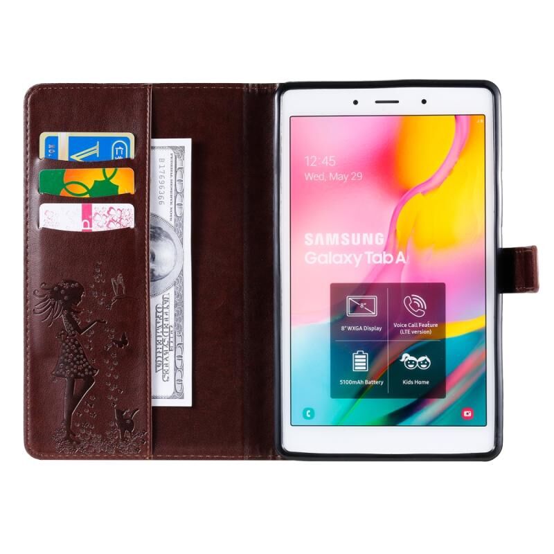 Για Galaxy Tab A 8.0 (2019) T295/T290 Θήκη δερμάτινη οριζόντιας αναδίπλωσης με σχέδιο γυναίκας και γάτας, με εκτύπωση, βάση στήριξης & θήκες για κάρτες & πορτοφόλι (Πράσινο)