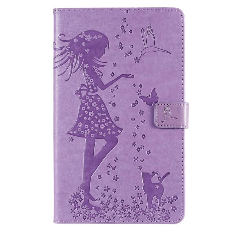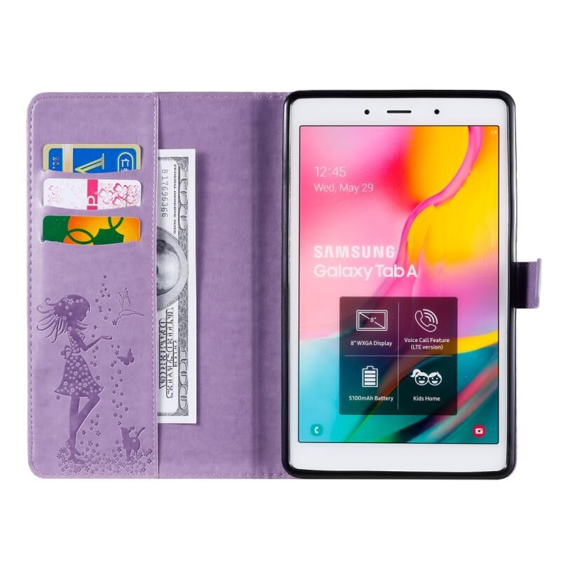 Για Galaxy Tab A 8.0 (2019) T295/T290 Θήκη δερμάτινη οριζόντιας αναδίπλωσης με σχέδιο γυναίκας και γάτας, με εκτύπωση, βάση στήριξης & θήκες για κάρτες & πορτοφόλι (Πράσινο)