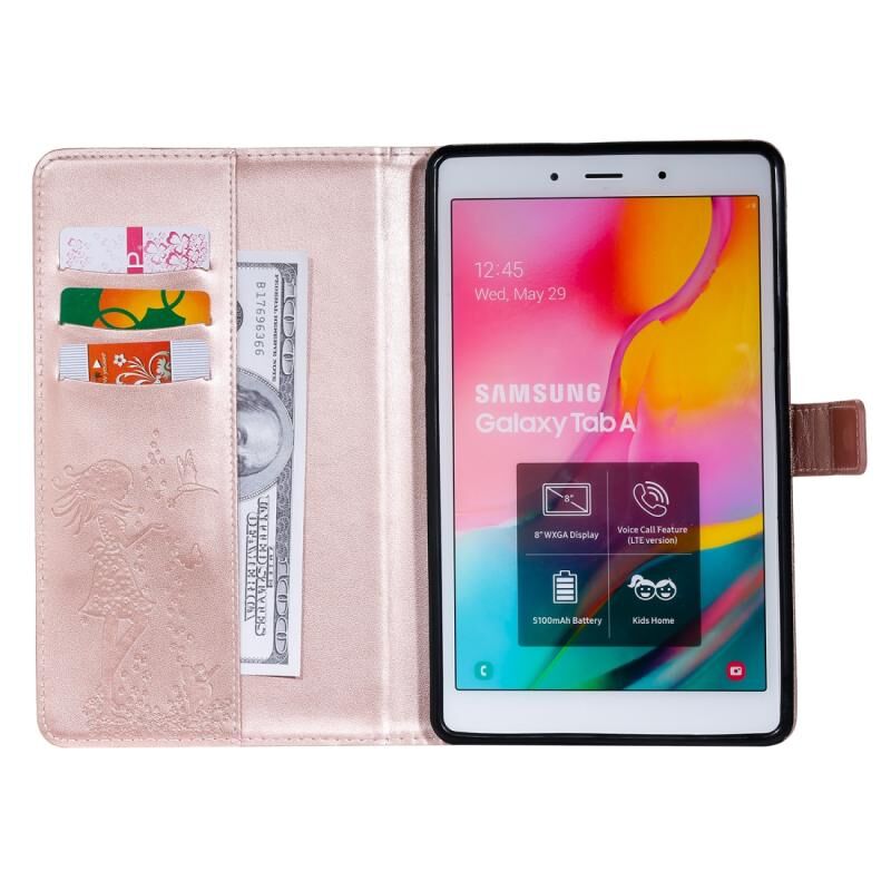 Για Galaxy Tab A 8.0 (2019) T295/T290 Θήκη δερμάτινη οριζόντιας αναδίπλωσης με σχέδιο γυναίκας και γάτας, με εκτύπωση, βάση στήριξης & θήκες για κάρτες & πορτοφόλι (Πράσινο)