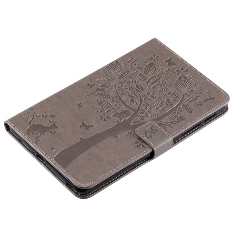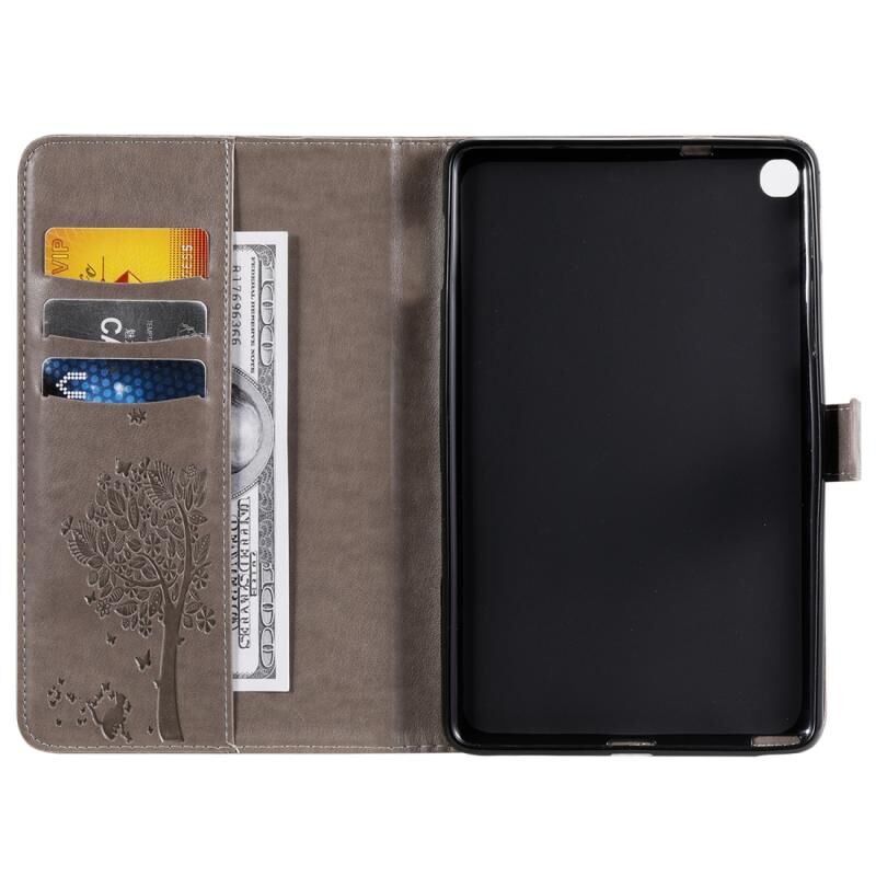Για Galaxy Tab A 8.0 & S Pen (2019) Θήκη οριζόντιας αναδίπλωσης από δέρμα με σχέδιο τυπωμένου γατιού και δέντρου, με βάση στήριξης & υποδοχές καρτών & πορτοφόλι (Πράσινο)