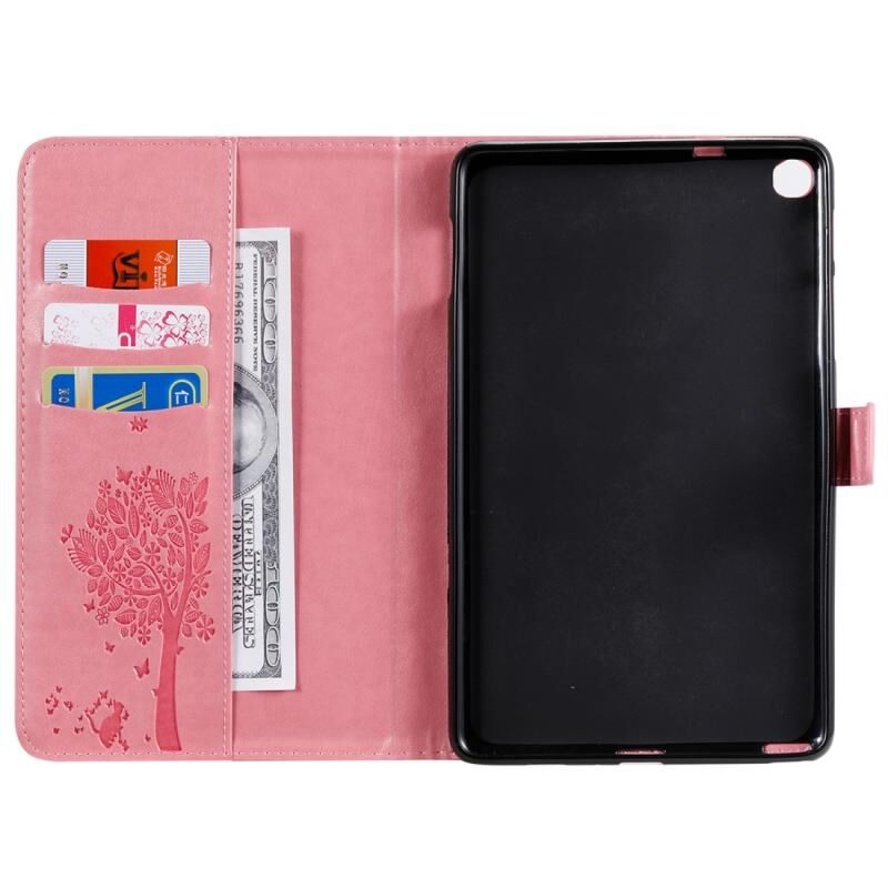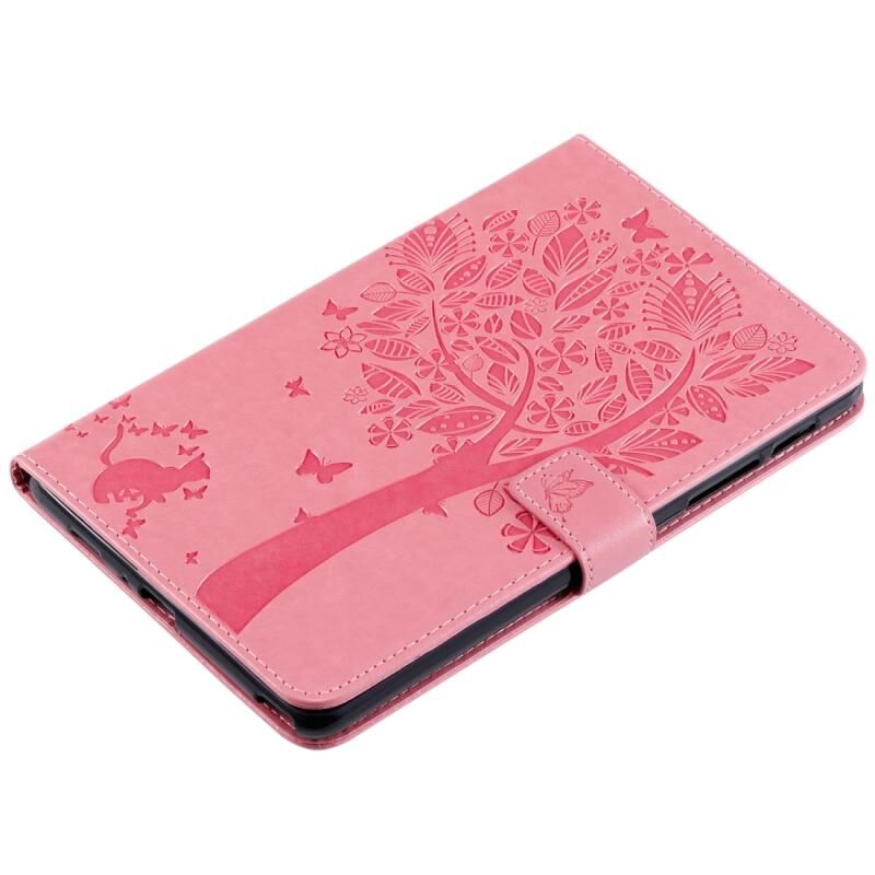 Για Galaxy Tab A 8.0 & S Pen (2019) Θήκη οριζόντιας αναδίπλωσης από δέρμα με σχέδιο τυπωμένου γατιού και δέντρου, με βάση στήριξης & υποδοχές καρτών & πορτοφόλι (Πράσινο)