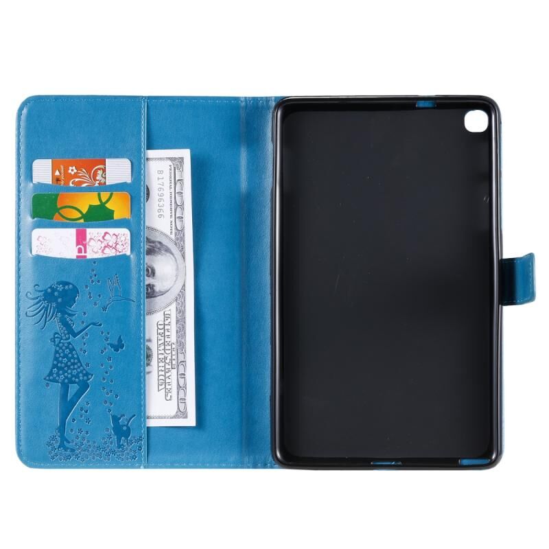 Για Galaxy Tab A 8.0 & S Pen (2019) Θήκη οριζόντιας αναδίπλωσης από δέρμα με σχέδιο γυναίκας και γάτας με ανάγλυφη εκτύπωση, με βάση στήριξης & υποδοχές καρτών & πορτοφόλι (Πράσινο)