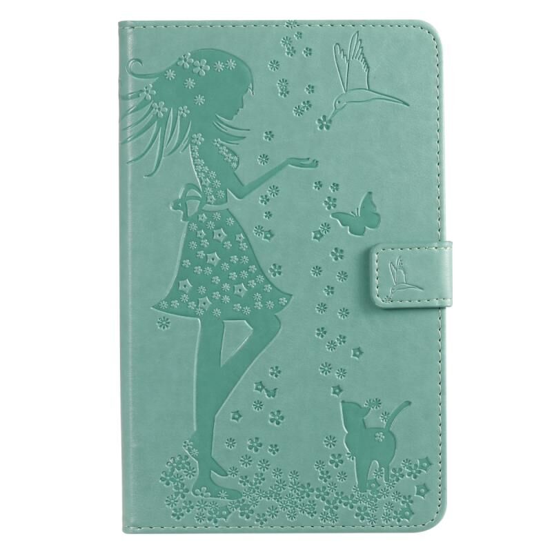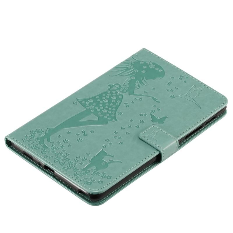 Για Galaxy Tab A 8.0 & S Pen (2019) Θήκη οριζόντιας αναδίπλωσης από δέρμα με σχέδιο γυναίκας και γάτας με ανάγλυφη εκτύπωση, με βάση στήριξης & υποδοχές καρτών & πορτοφόλι (Πράσινο)