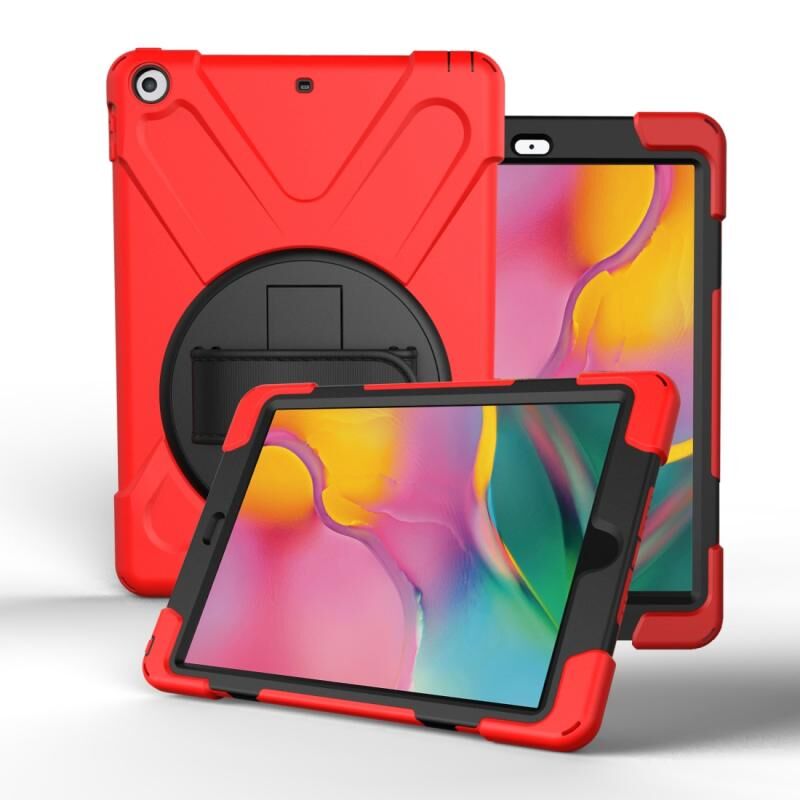 For Galaxy Tab A 8.0(2019)P200/P205 360 Degree Rotation PC + Silicone Protective Case with Holder & Hand-strap(Red)