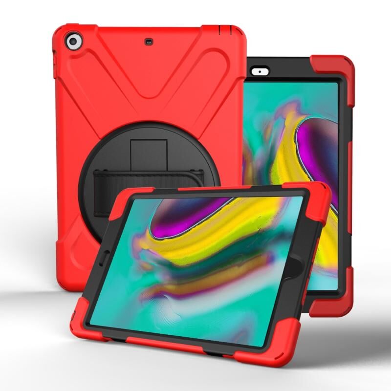 For Galaxy Tab S5E 10.5 (2019) T720 360 Degree Rotation PC + Silicone Protective Case with Holder & Hand-strap(Red)