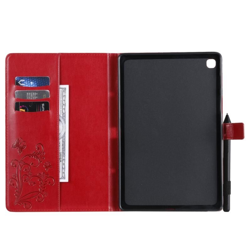 Θήκη για Galaxy Tab S5e με εκτυπωμένο σχέδιο πεταλούδας, οριζόντια, από δερματίνη PU με βάση στήριξης & θήκες για κάρτες & πορτοφόλι & θήκη για στυλό (Πορτοκαλί)