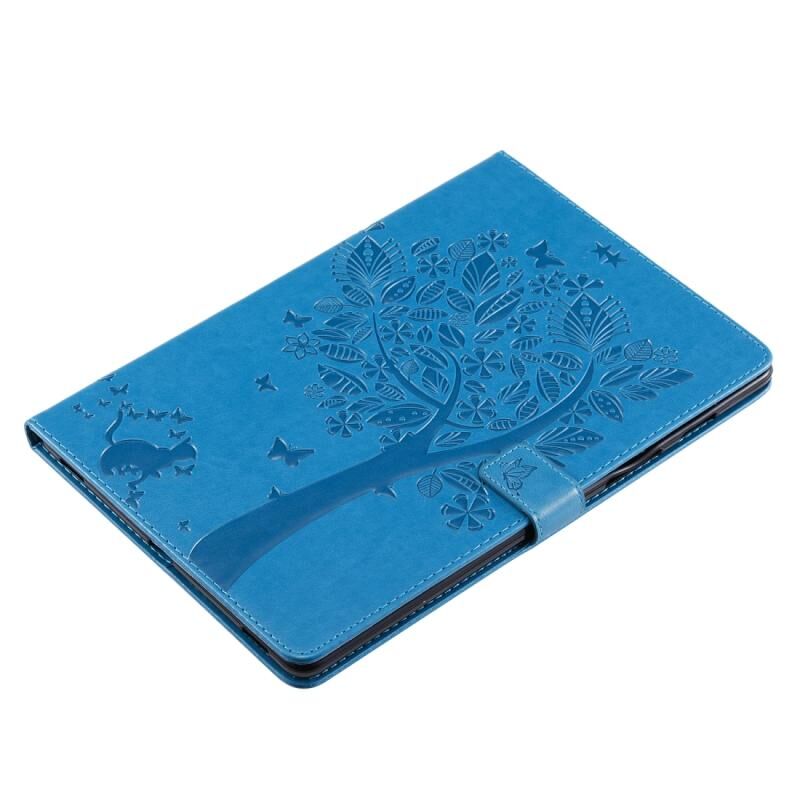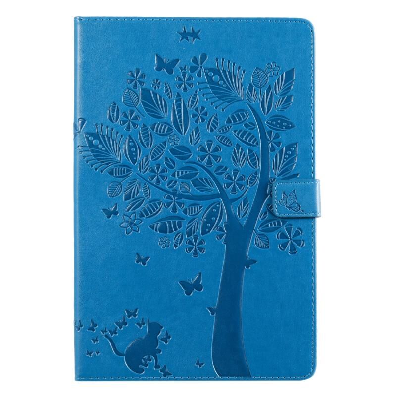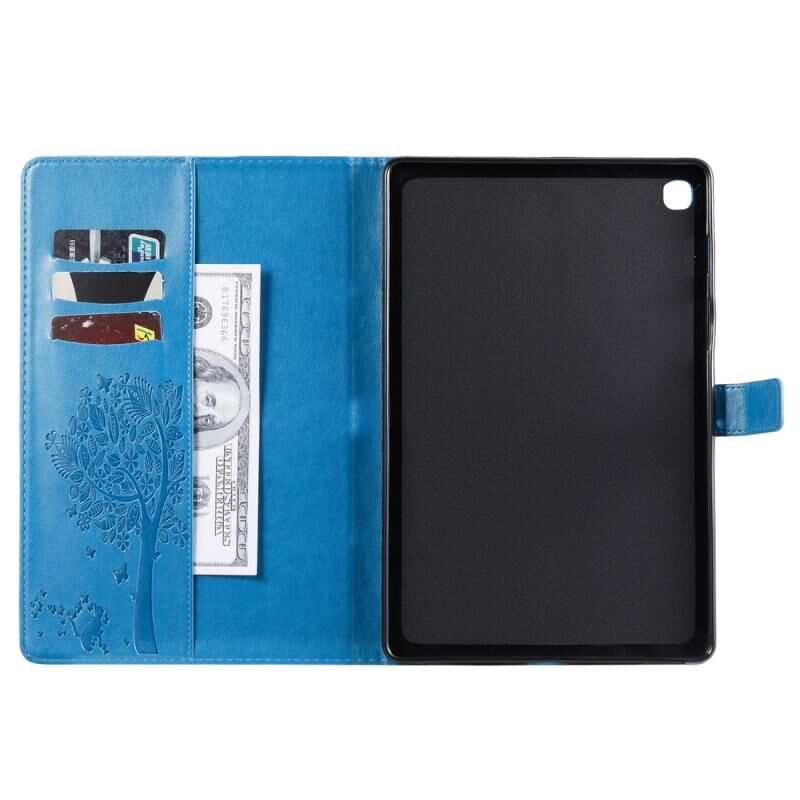 Θήκη δέρματος οριζόντιας αναδίπλωσης για Galaxy Tab S5e με εκτυπωμένο σχέδιο γάτας και δέντρου, με βάση στήριξης & υποδοχές καρτών & πορτοφόλι (Κόκκινο Ρόδο)
