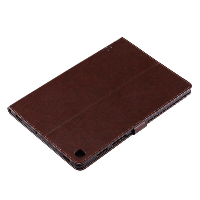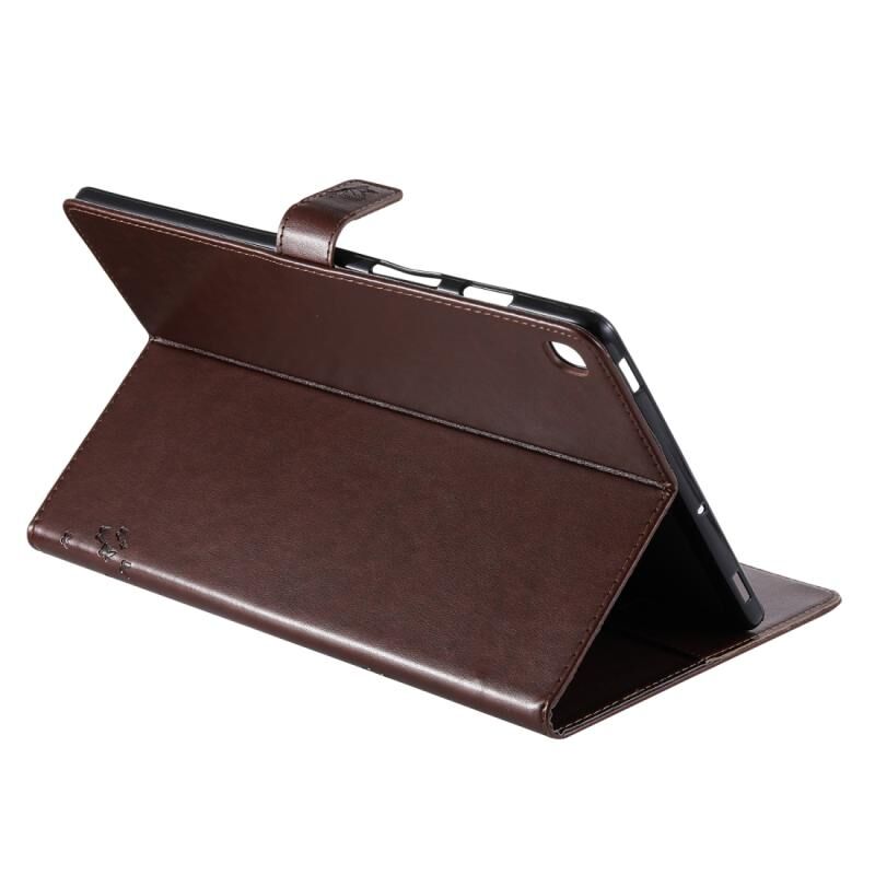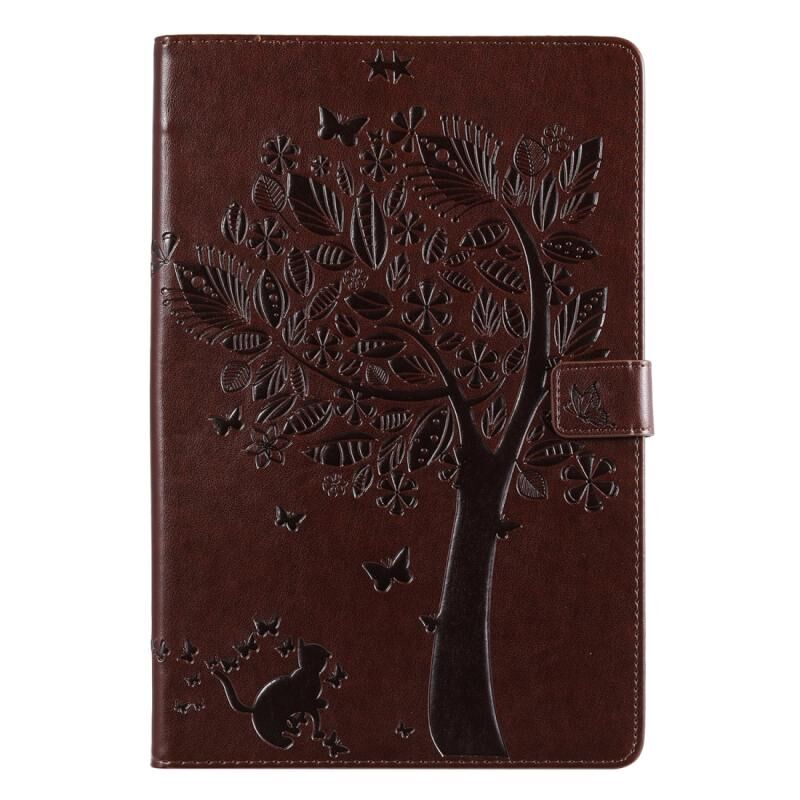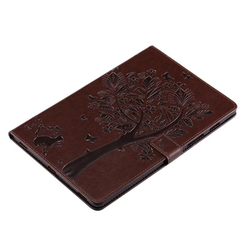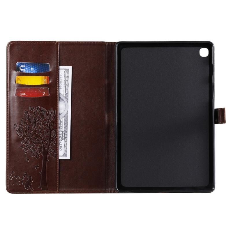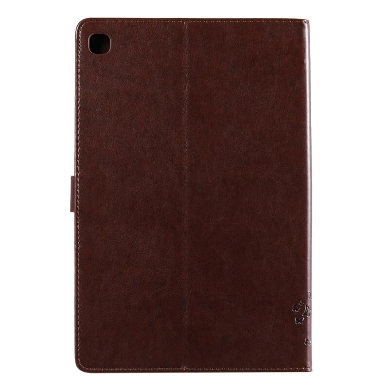 Θήκη δέρματος οριζόντιας αναδίπλωσης για Galaxy Tab S5e με εκτυπωμένο σχέδιο γάτας και δέντρου, με βάση στήριξης & υποδοχές καρτών & πορτοφόλι (Χρυσό Ρόδι)