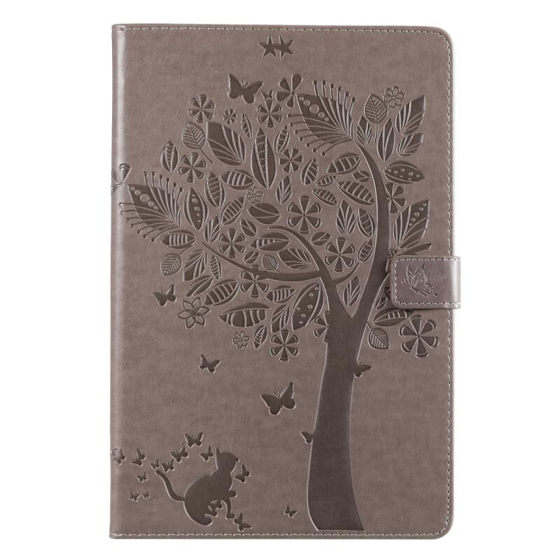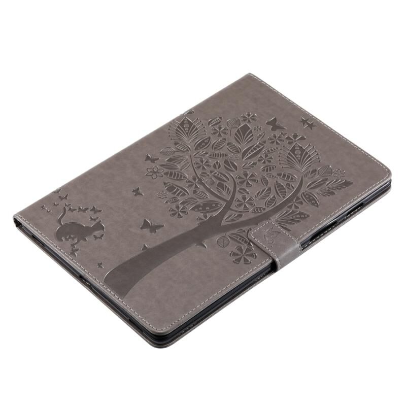 Θήκη δέρματος οριζόντιας αναδίπλωσης για Galaxy Tab S5e με εκτυπωμένο σχέδιο γάτας και δέντρου, με βάση στήριξης & υποδοχές καρτών & πορτοφόλι (Κόκκινο Ρόδο)