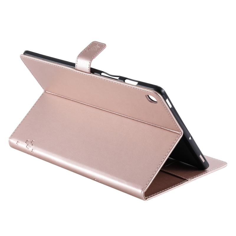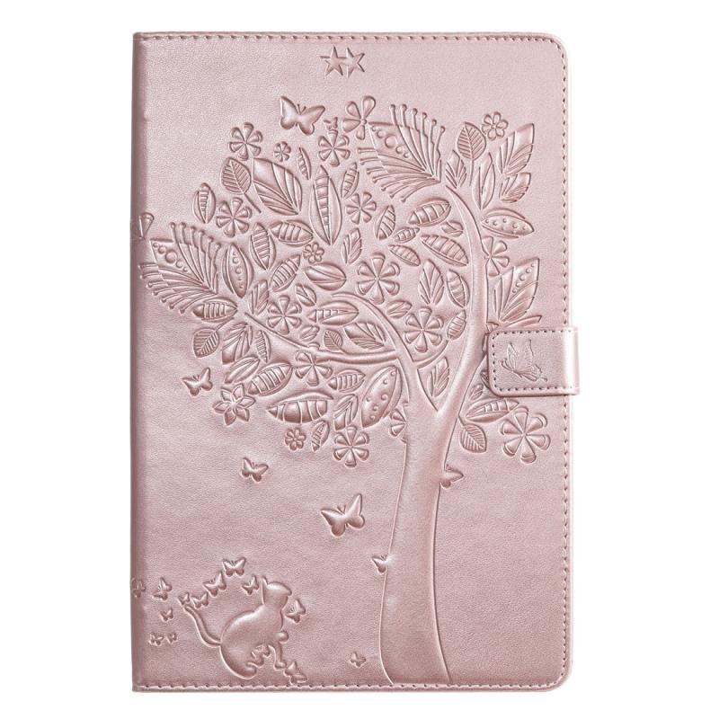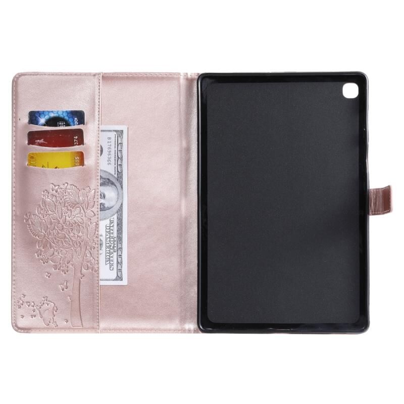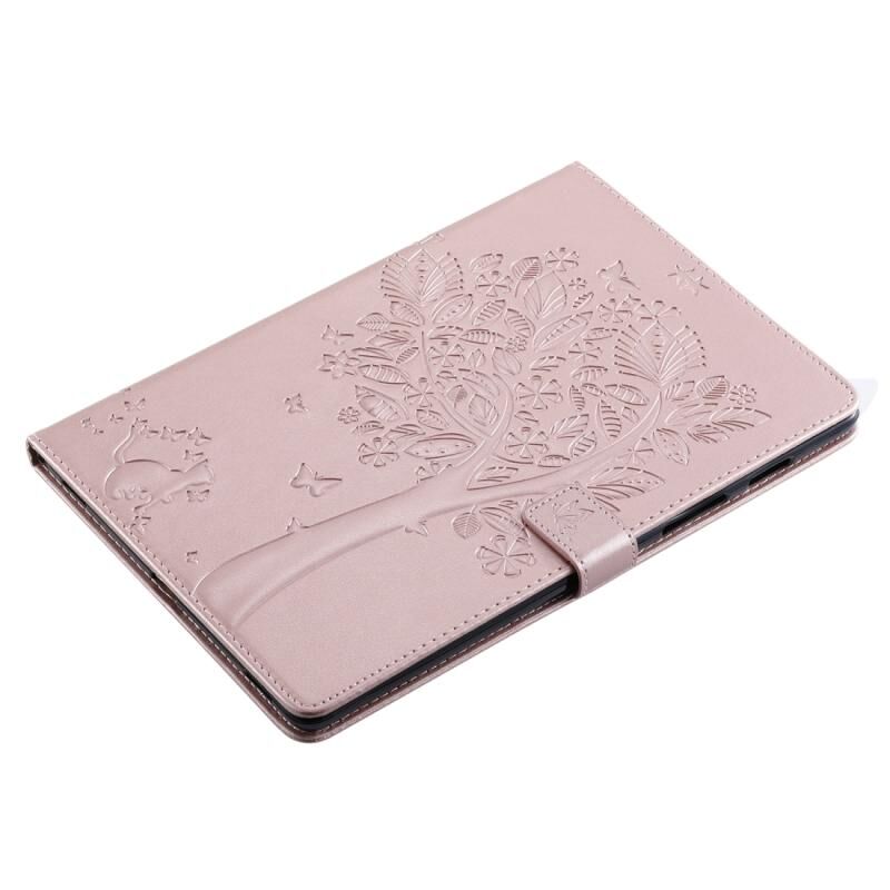 Θήκη δέρματος οριζόντιας αναδίπλωσης για Galaxy Tab S5e με εκτυπωμένο σχέδιο γάτας και δέντρου, με βάση στήριξης & υποδοχές καρτών & πορτοφόλι (Χρυσό Ρόδι)