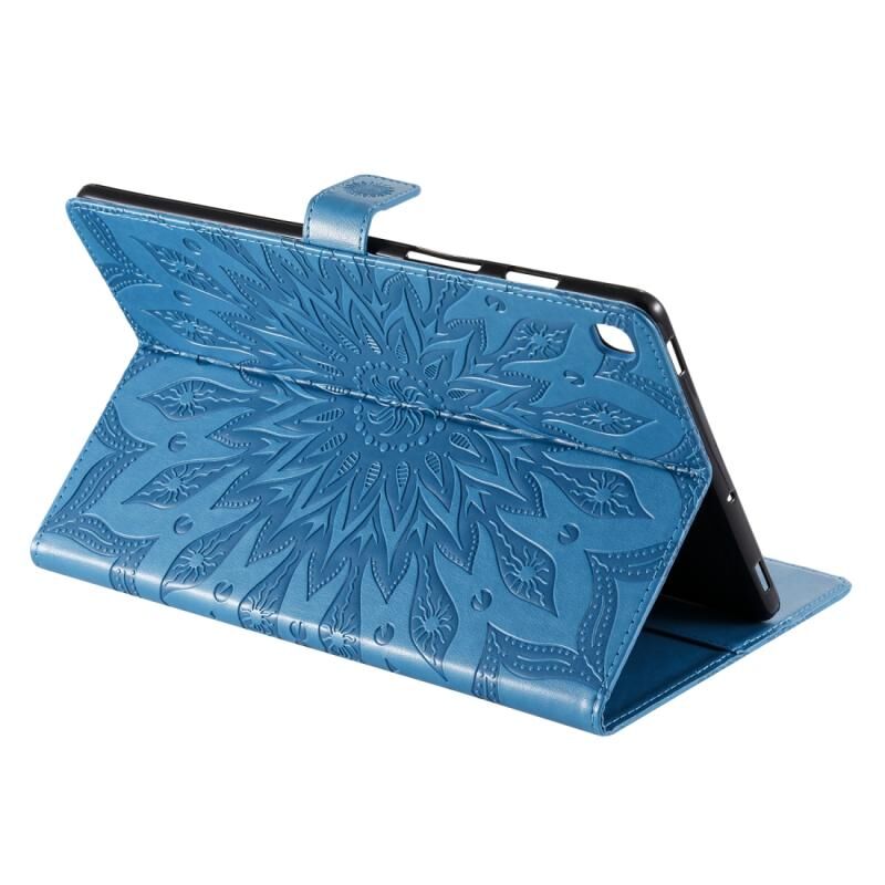 Θήκη δέρματος οριζόντιας αναδίπλωσης με σχέδιο ηλίανθου, εκτυπωμένη με θερμοτύπηση για Galaxy Tab S5e, με βάση στήριξης & υποδοχές καρτών & πορτοφόλι (Κόκκινο Ρόδο)