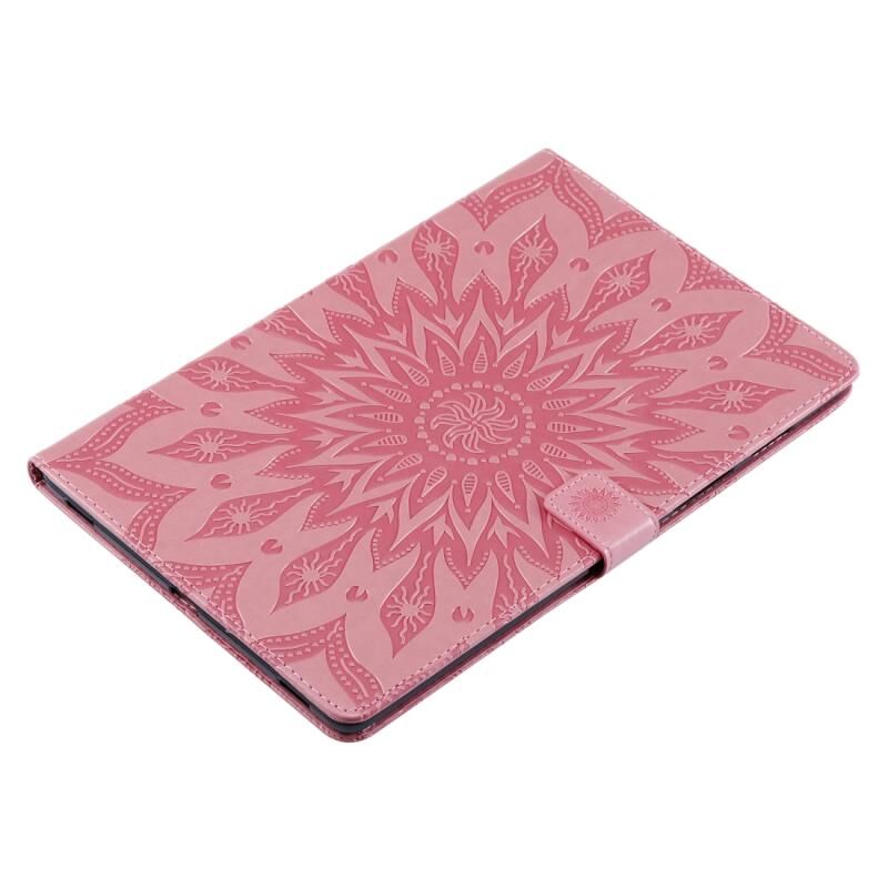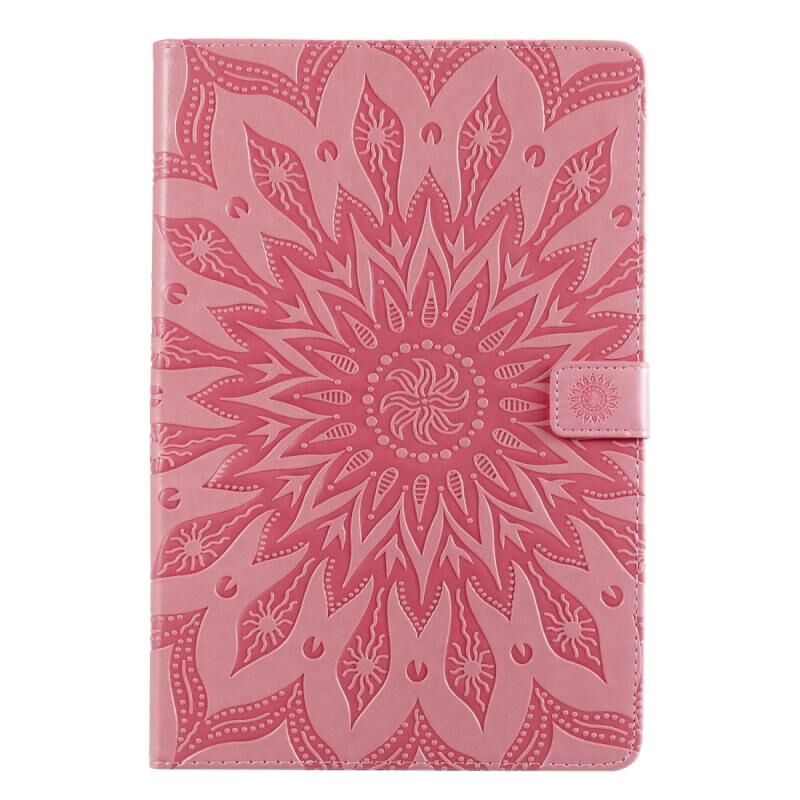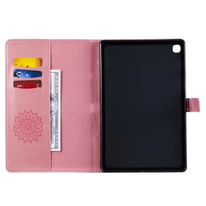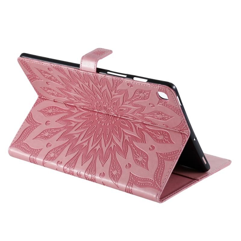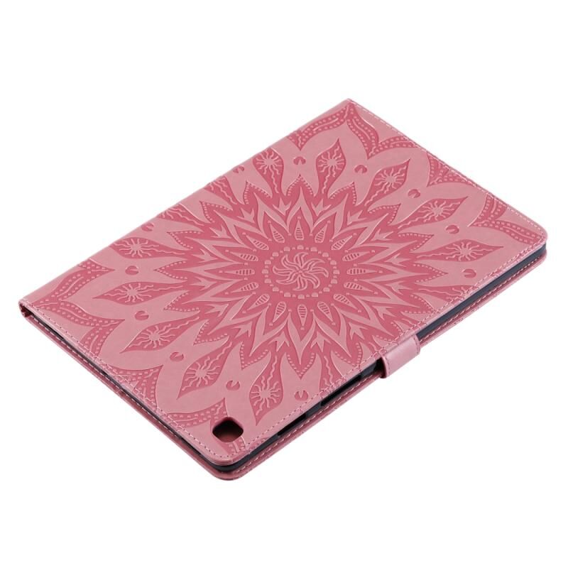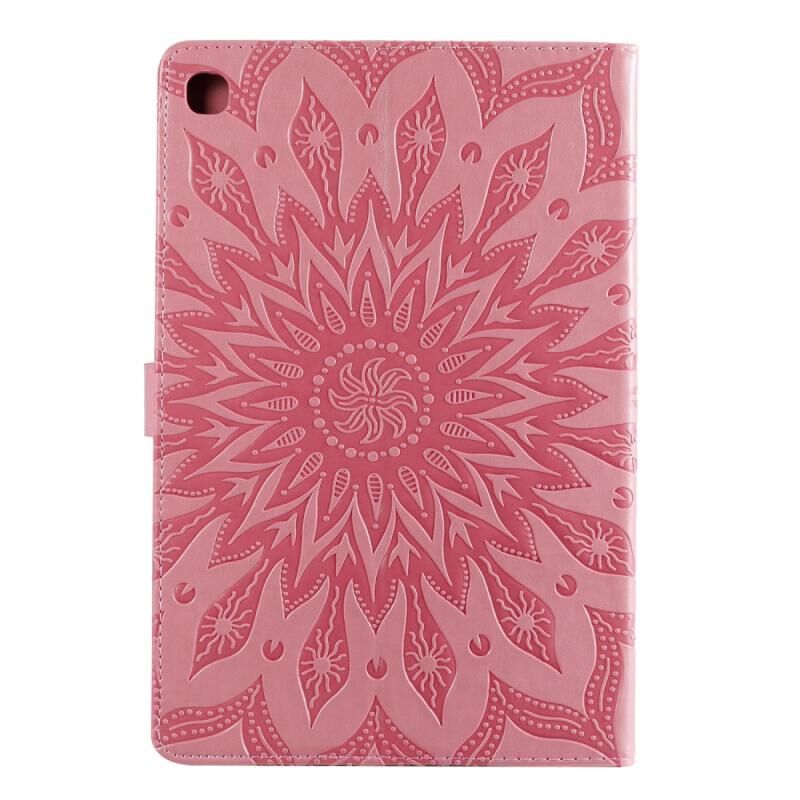 Θήκη δέρματος οριζόντιας αναδίπλωσης με σχέδιο ηλίανθου, εκτυπωμένη με θερμοτύπηση για Galaxy Tab S5e, με βάση στήριξης & υποδοχές καρτών & πορτοφόλι (Γκρι)