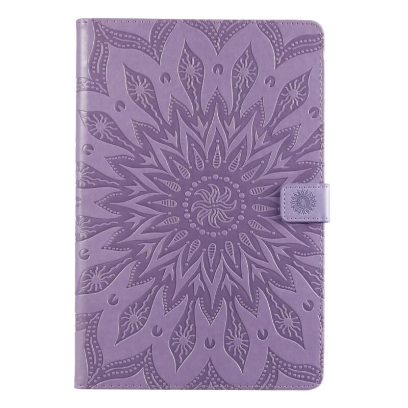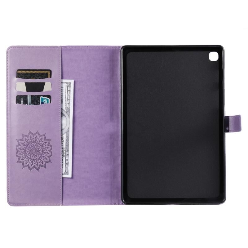 Θήκη δέρματος οριζόντιας αναδίπλωσης με σχέδιο ηλίανθου, εκτυπωμένη με θερμοτύπηση για Galaxy Tab S5e, με βάση στήριξης & υποδοχές καρτών & πορτοφόλι (Καφέ)