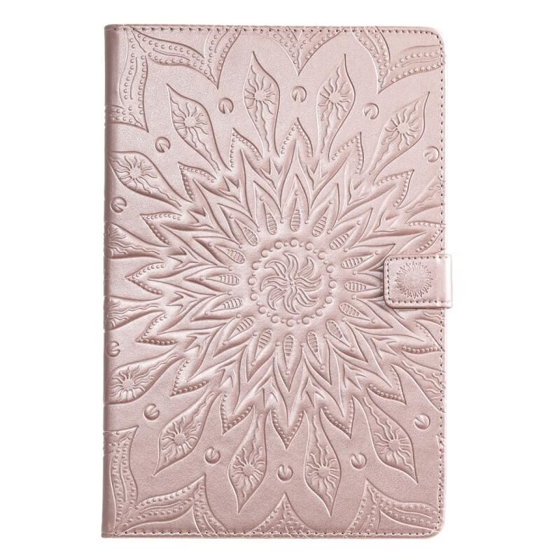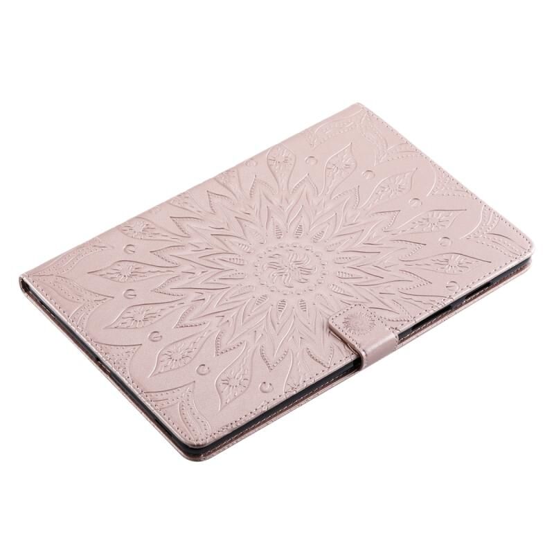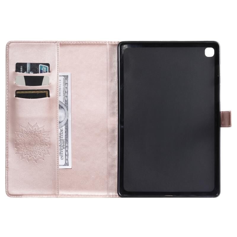 Θήκη δέρματος οριζόντιας αναδίπλωσης με σχέδιο ηλίανθου, εκτύπωση υπό πίεση για Galaxy Tab S5e, με βάση & υποδοχές καρτών & πορτοφόλι (Χρυσό Ρόδι)