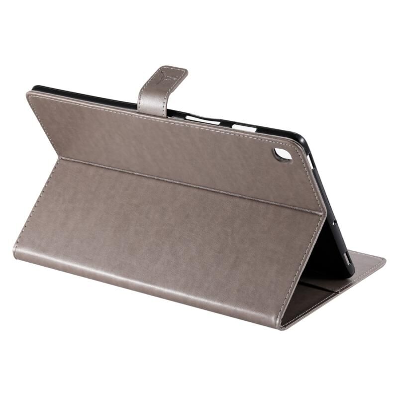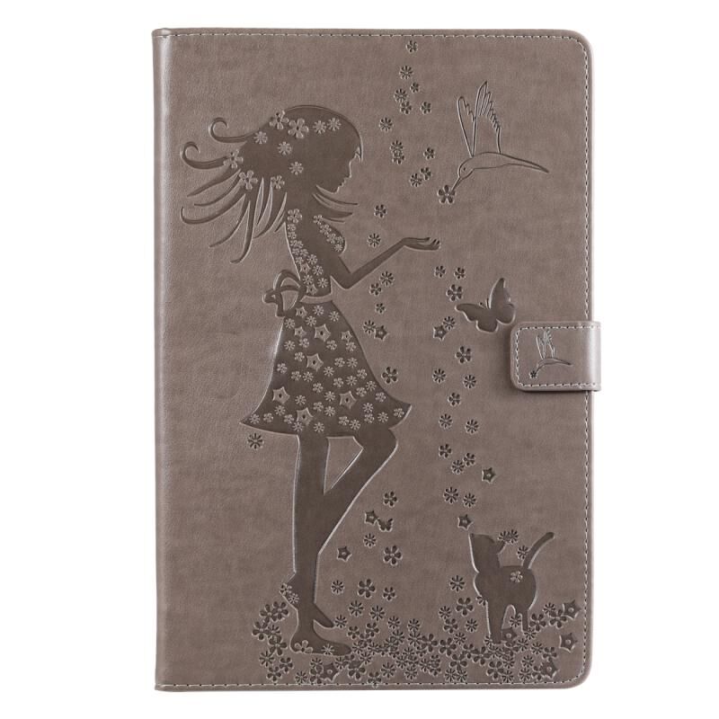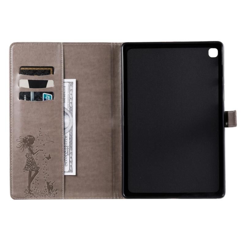 Θήκη βιβλίου από δέρμα για Galaxy Tab S5e με σχέδιο γυναίκας και γάτας, οριζόντια, με βάση στήριξης & θήκες για κάρτες & πορτοφόλι (Γκρι)