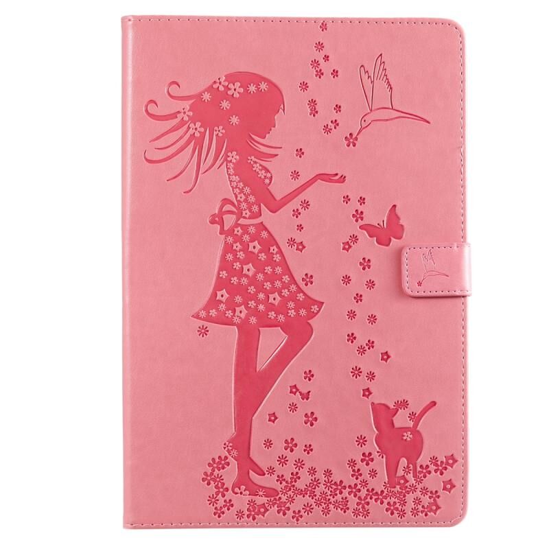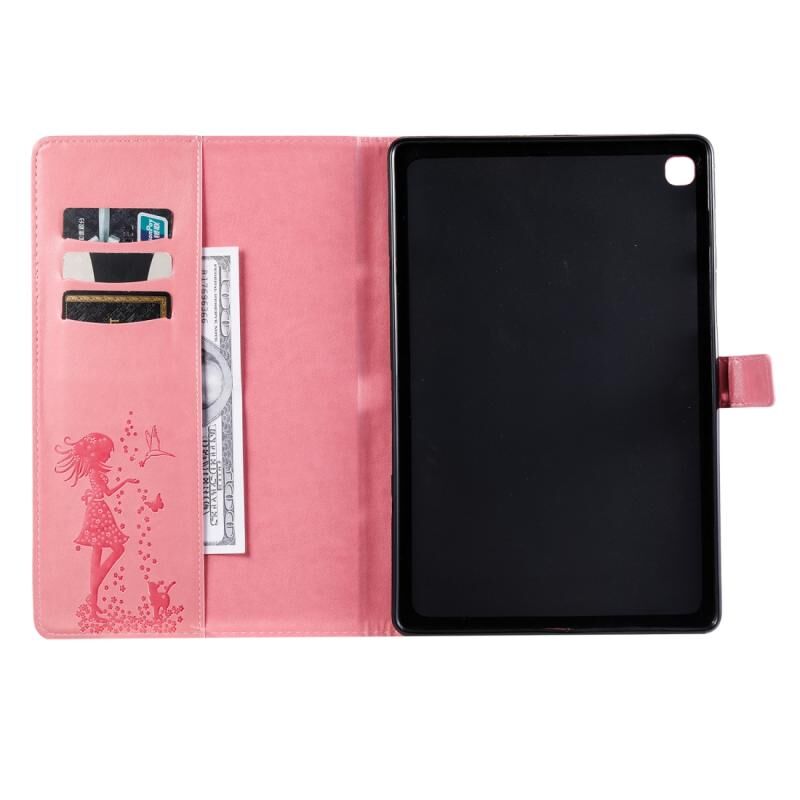 Θήκη βιβλίου από δέρμα για Galaxy Tab S5e με σχέδιο γυναίκας και γάτας, οριζόντια, με βάση στήριξης & θήκες για κάρτες & πορτοφόλι (Γκρι)