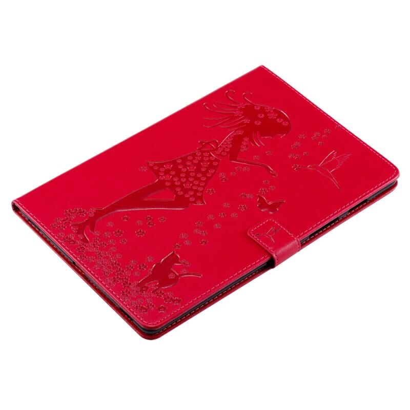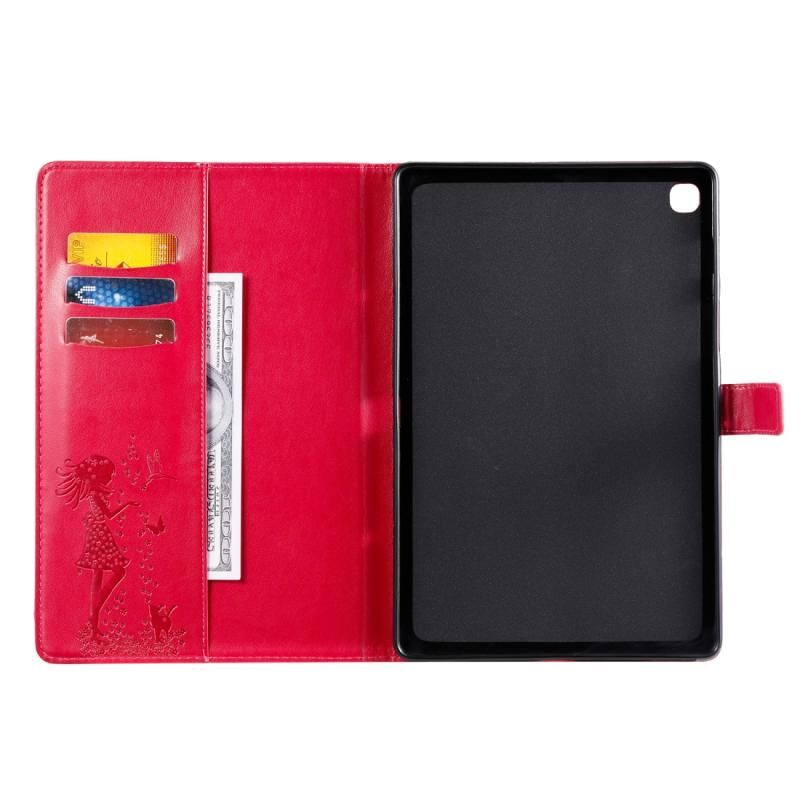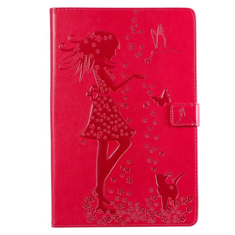 Θήκη βιβλίου από δέρμα για Galaxy Tab S5e με σχέδιο γυναίκας και γάτας, οριζόντια, με βάση στήριξης & θήκες για κάρτες & πορτοφόλι (Κόκκινο Ρόδο)