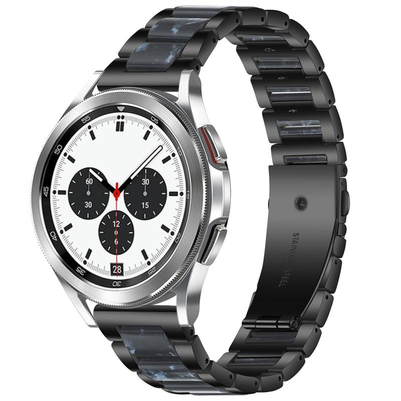 For Galaxy Watch 4 Classic 42 / 46mm Interbead Resin Metal Watch Band(Black Blue)