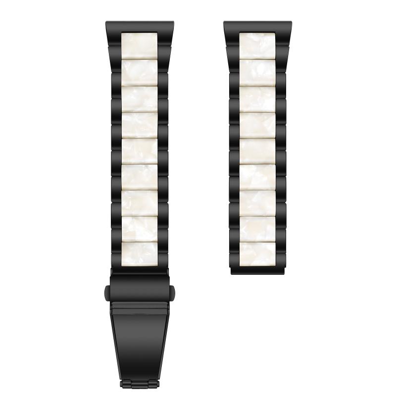 For Galaxy Watch 4 Classic 42 / 46mm Interbead Resin Metal Watch Band(Black White)