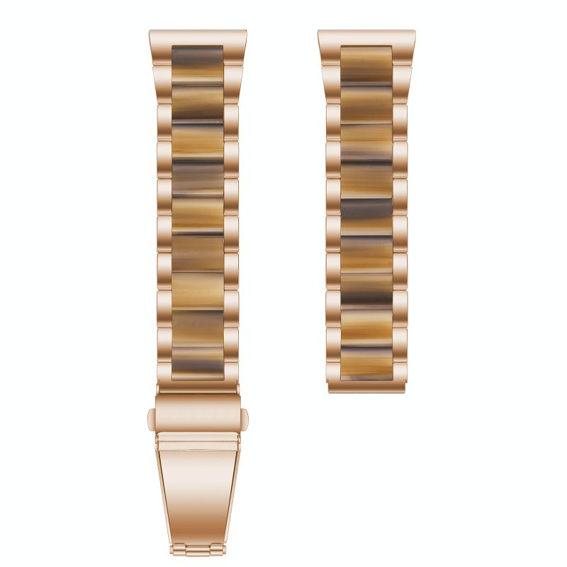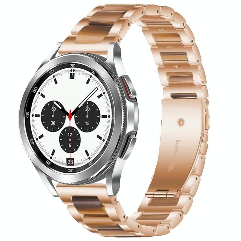 For Galaxy Watch 4 Classic 42 / 46mm Interbead Resin Metal Watch Band(Rose Gold Brown)