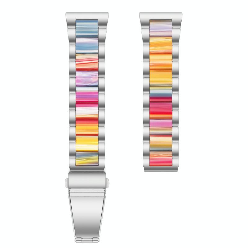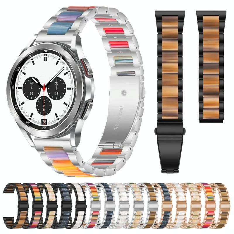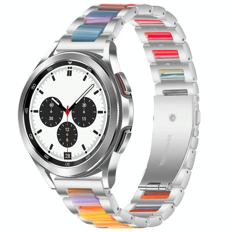 For Galaxy Watch 4 Classic 42 / 46mm Interbead Resin Metal Watch Band(Silver Rainbow)