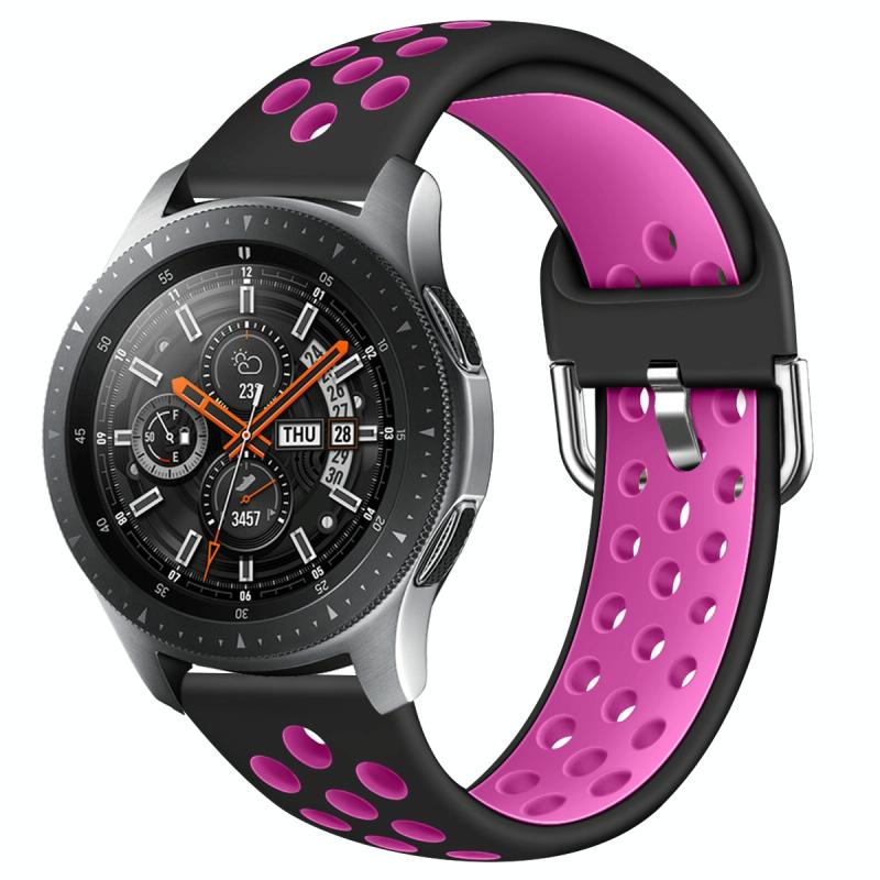 For Galaxy Watch 46 / S3 / Huawei Watch GT 1 / 2 22mm Smart Watch Silicone Double Color Watch Band, Size:L(Black Rose Purple)