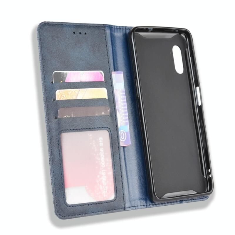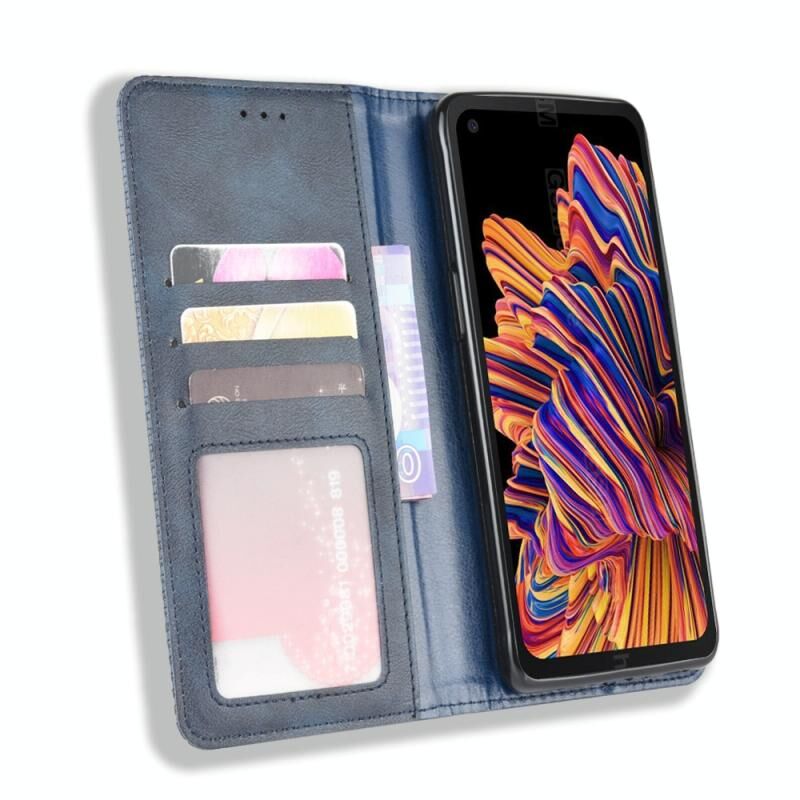Θήκη δέρματος οριζόντιας αναδίπλωσης για Galaxy Xcover Pro με μαγνητικό κούμπωμα, υφή Crazy Horse retro, με βάση στήριξης & υποδοχές καρτών & κορνίζα φωτογραφιών (Μαύρο)
