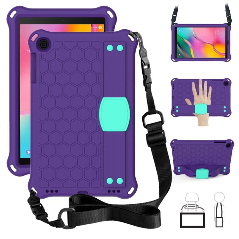 Για GalaxyTab A 10.1 (2019) T510 Θήκη Προστασίας Επίπεδη με Αντικραδασμική Προστασία Τεσσάρων Γωνιών από EVA + PC με Σχεδιασμό Κηρήθρας και Λουρί (Μαύρο+Ακουα)