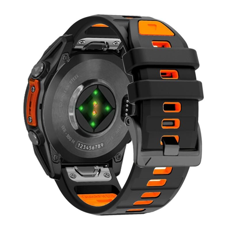 Για το Garmin 22mm Επίσημη Δύο χρώμα βιδωτή πόρπη γρήγορη απελευθέρωση σιλικόνης ρολόι μπάντα ρολογιού (μαύρο πορτοκαλί)