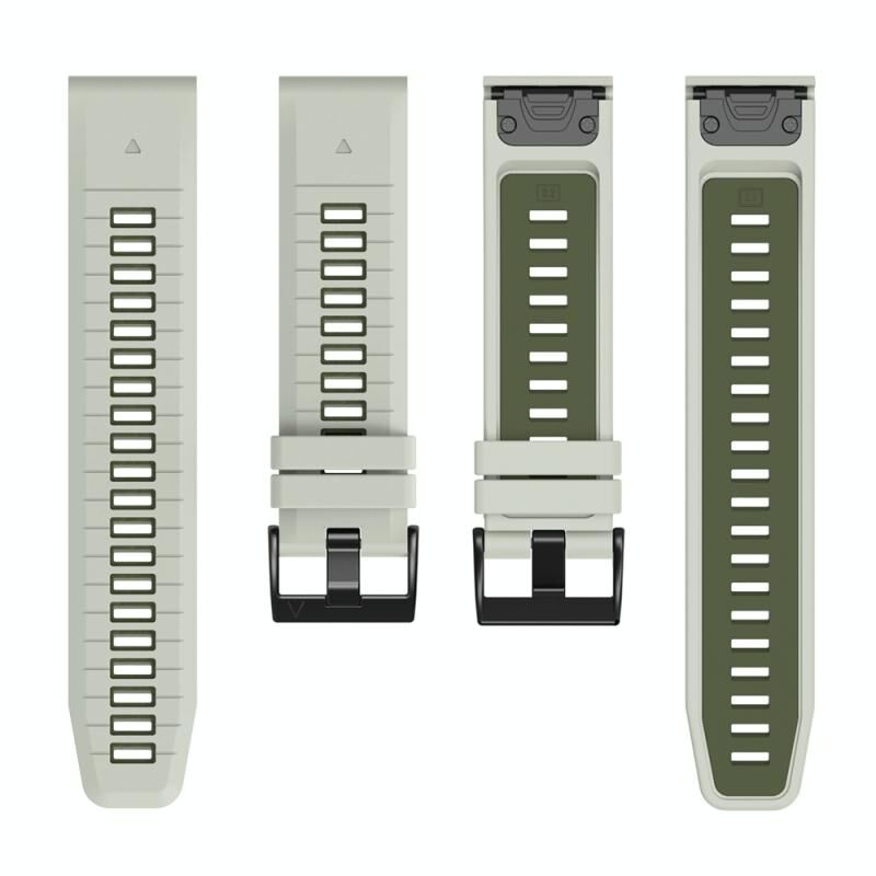 Για Garmin 26mm δύο χρωμάτων γρήγορη απελευθέρωση σιλικόνης ρολόι μπάντα ρολογιών με εργαλείο (γκρι πράσινο)