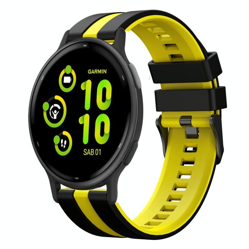 Για Garmin Active 5 20mm δύο χρωμάτων αθλητική ζώνη σιλικόνης ρολόι (μαύρο + κίτρινο)