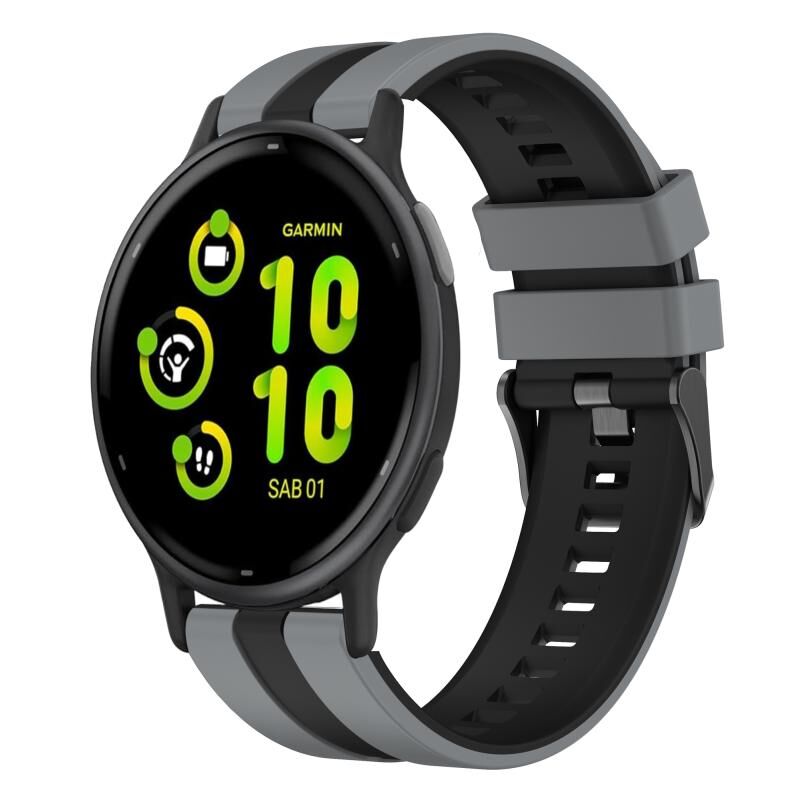 Για Garmin Active 5 20mm δύο χρωμάτων αθλητική ζώνη σιλικόνης ρολόι (γκρι+μαύρο)
