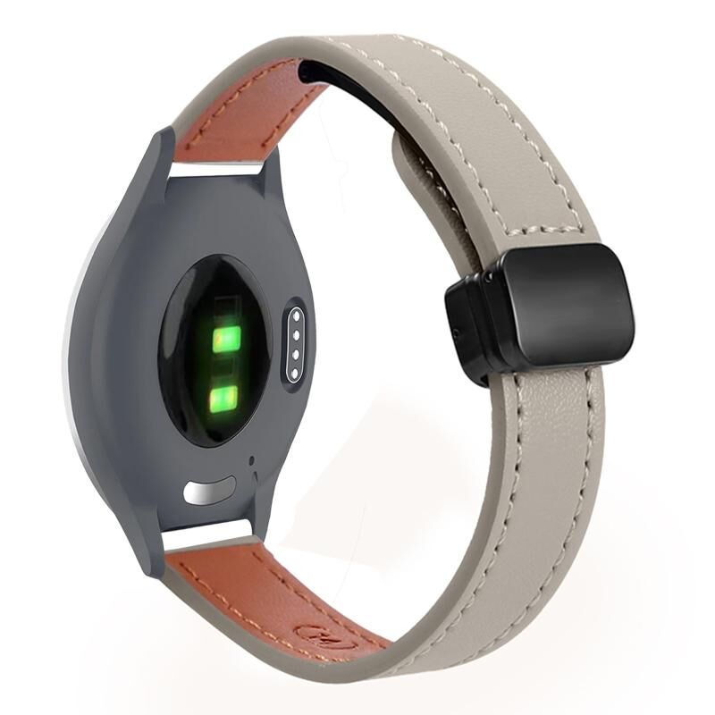 Για Garmin Active S 18mm λεπτό μαγνητικό λουράκι με αγκράφα από δέρμα μικροϊνών (Calf Elephant Gray)