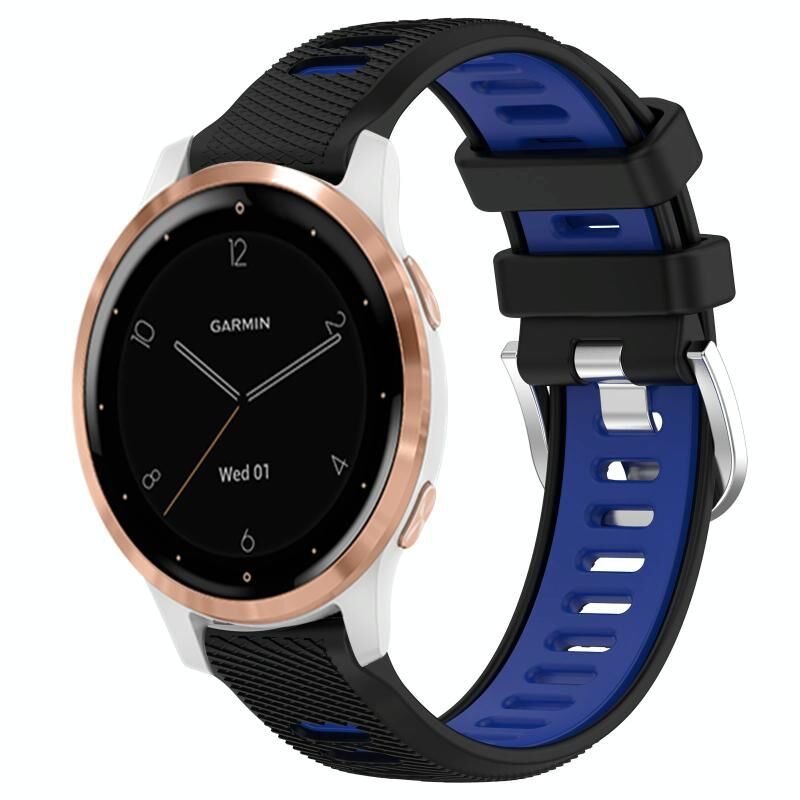Για Garmin Active S 18mm Αθλητισμός Δύο χρωμάτων χάλυβα πόρπη σιλικόνης ρολόι μπάντα (μαύρο + μπλε)