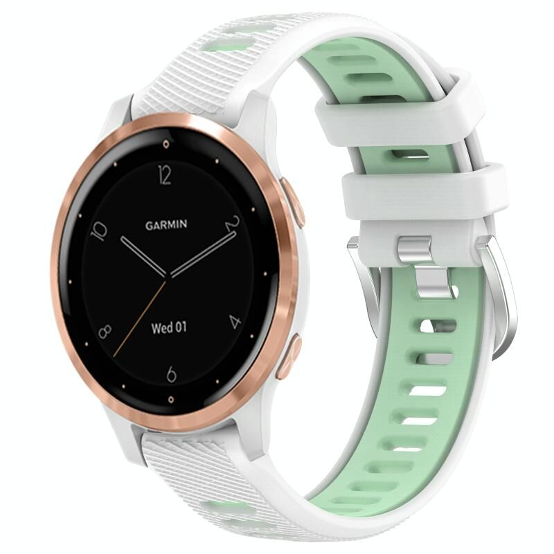 Για Garmin Active S 18mm Αθλητισμός Δύο χρωμάτων χάλυβα πόρπη σιλικόνης ρολόι μπάντα (λευκό + Teal)