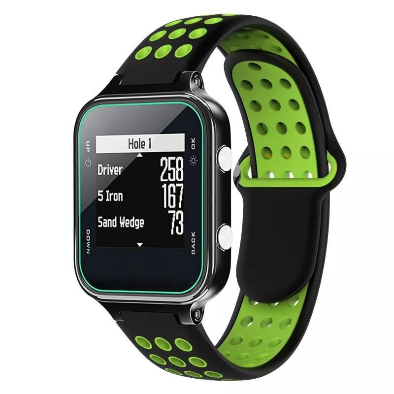 Για το Garmin Approach S20 Δύο-χρώμα διάτρητο αναπνεύσιμο λουράκι σιλικόνης (μαύρο + πράσινο)