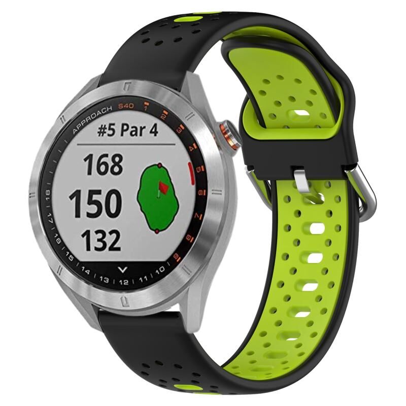 Για το Garmin Approach S40 20mm αναπνεύσιμο ρολόι σιλικόνης δύο χρωμάτων (μαύρο + πράσινο χρώμα)