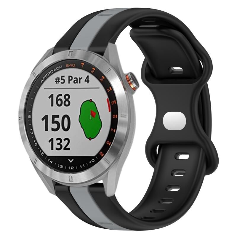 Για το Garmin Approach S40 20mm Butterfly Buckle Two-Color Silicone Watch Band (μαύρο + γκρι)
