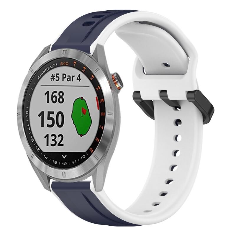 Για το Garmin Approach S40 20mm Convex Loop δύο χρωμάτων σιλικόνης ρολόι μπάντα (Midnight Blue + Λευκό)