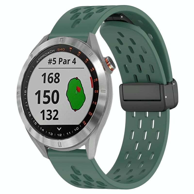 Για Garmin Approach S40 20mm Πτυσσόμενο μαγνητικό κούμπωμα ζώνη ρολογιού σιλικόνης (σκούρο πράσινο)