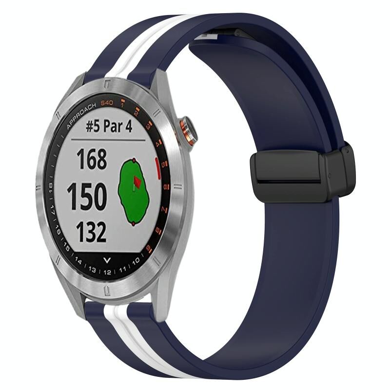 Για Garmin Approach S40 20mm Πτυσσόμενο μαγνητικό κούμπωμα ζώνη σιλικόνης ρολόι (Midnight Blue + Λευκό)