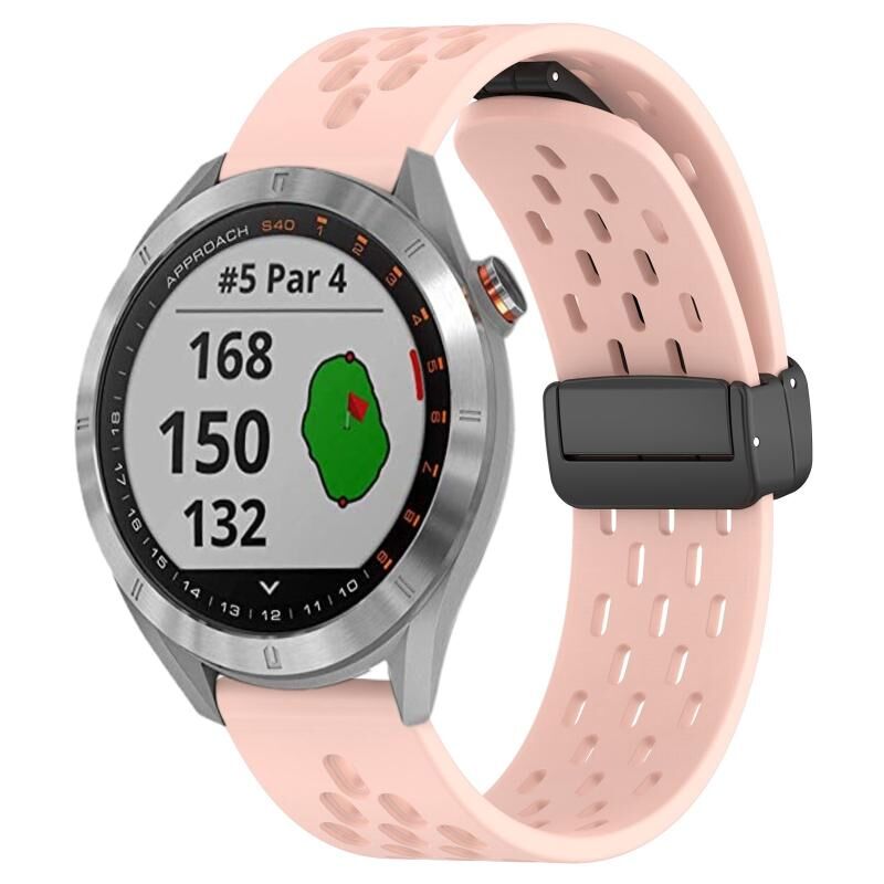 Για Garmin Approach S40 20mm Πτυσσόμενο μαγνητικό κούμπωμα ζώνη ρολογιού σιλικόνης (ροζ)