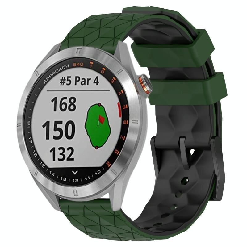 Για Garmin Approach S40 20 χιλιοστά ποδοσφαίρου μοτίβο δύο χρωμάτων σιλικόνης ρολόι μπάντα (Armygreen + Μαύρο)