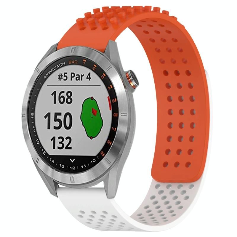 Για Garmin Approach S40 20mm οπές αναπνεύσιμο 3D Dots σιλικόνης ρολόι μπάντα (πορτοκαλί + λευκό)