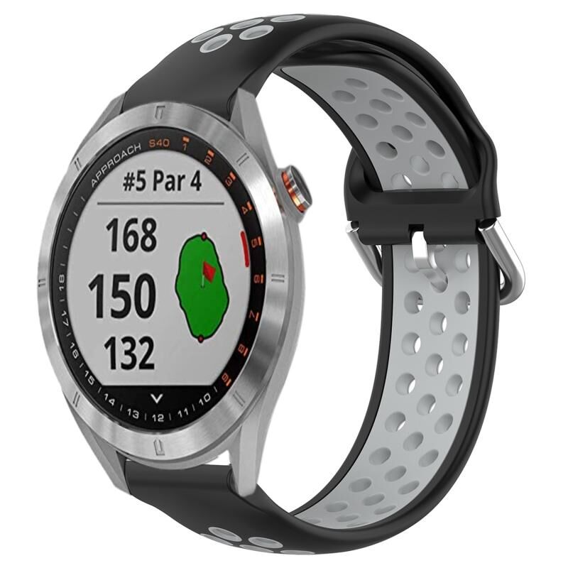 Για το Garmin Approach S40 20mm διάτρητο αναπνεύσιμο αθλητικό λουράκι σιλικόνης (μαύρο + γκρι)