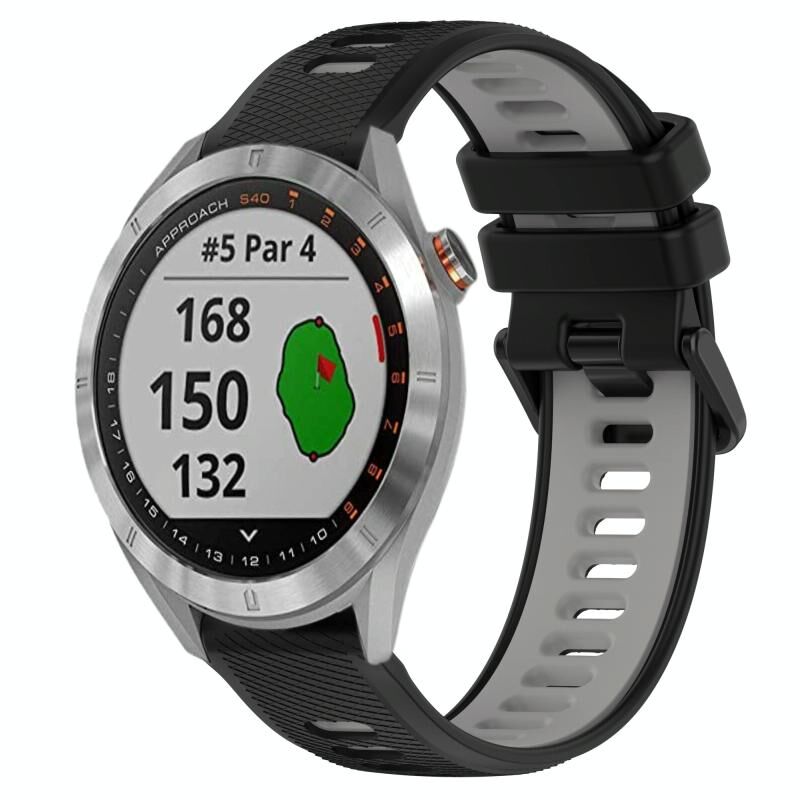 Για το Garmin Approach S40 20mm Αθλητικό ρολόι σιλικόνης δύο χρωμάτων (μαύρο + γκρι)
