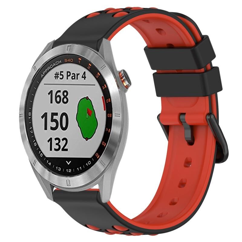 Για το Garmin Approach S40 20 χιλιοστά δύο χρωμάτων πορώδες λουράκι σιλικόνης ρολόι (μαύρο+κόκκινο)