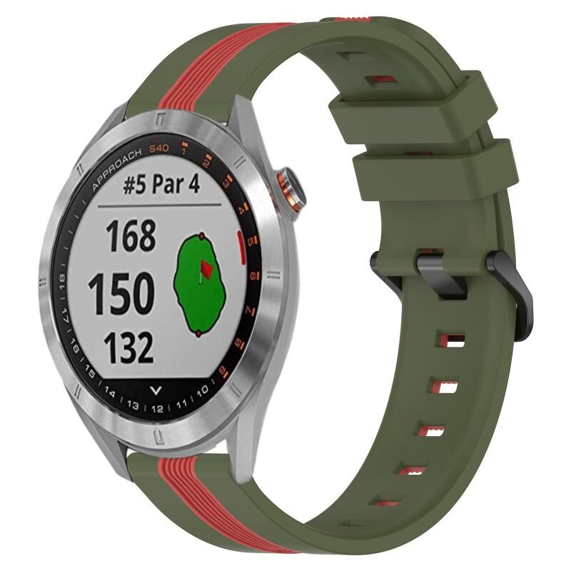 Για το Garmin Approach S40 20mm κάθετη ζώνη ρολογιού σιλικόνης δύο χρωμάτων (πράσινο στρατού + κόκκινο)